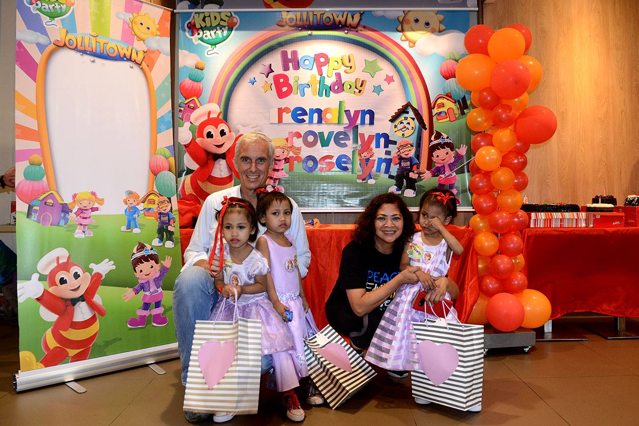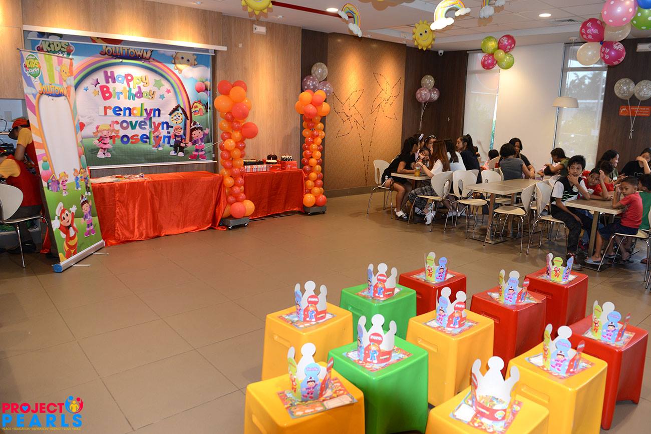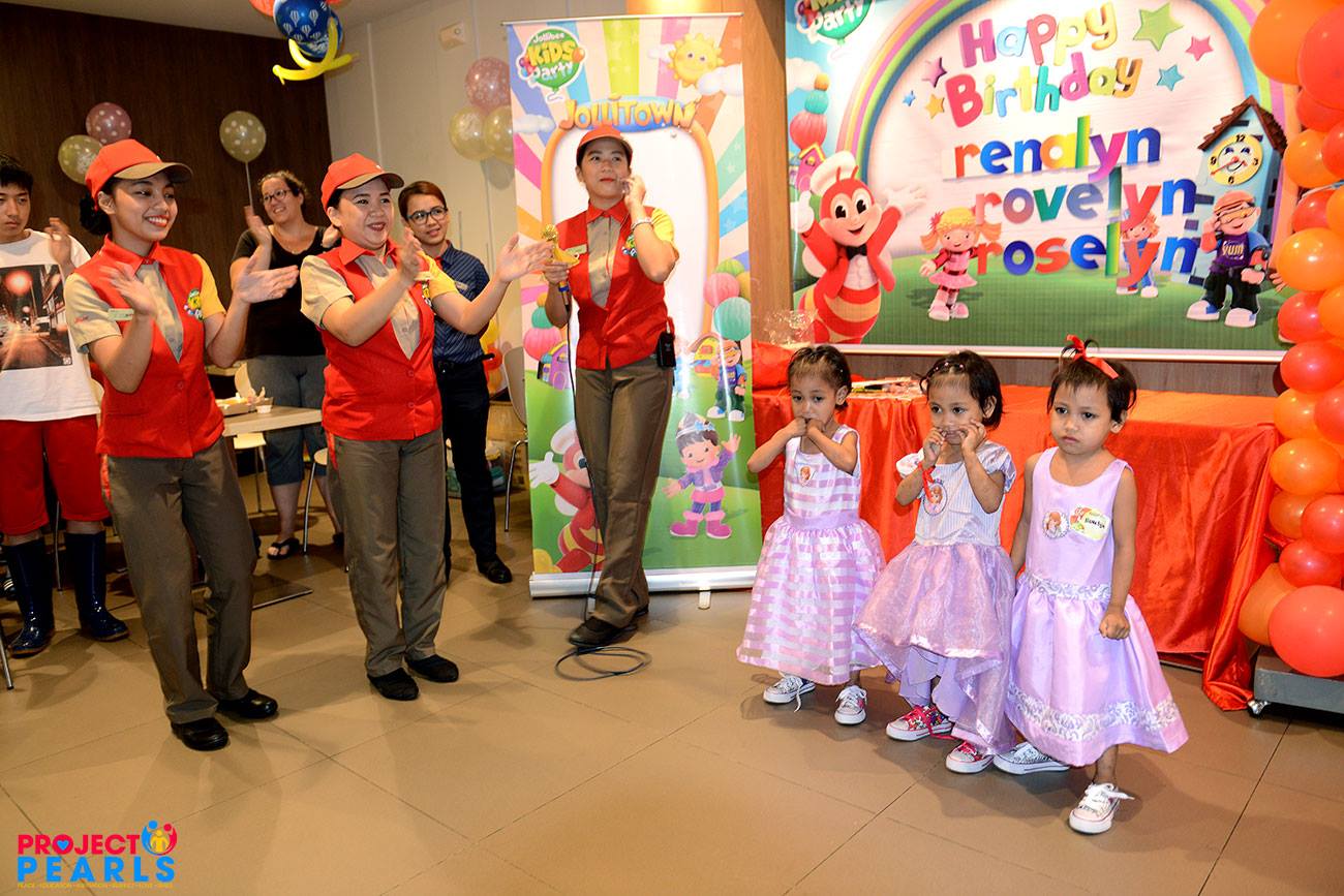 Triplets 4th birthday celebration at Jollibee.