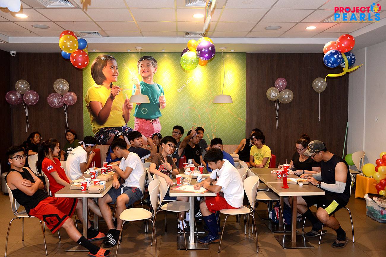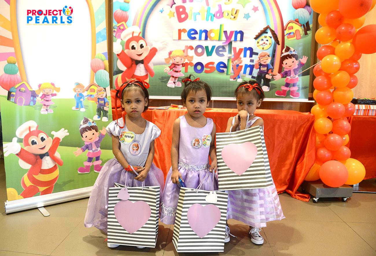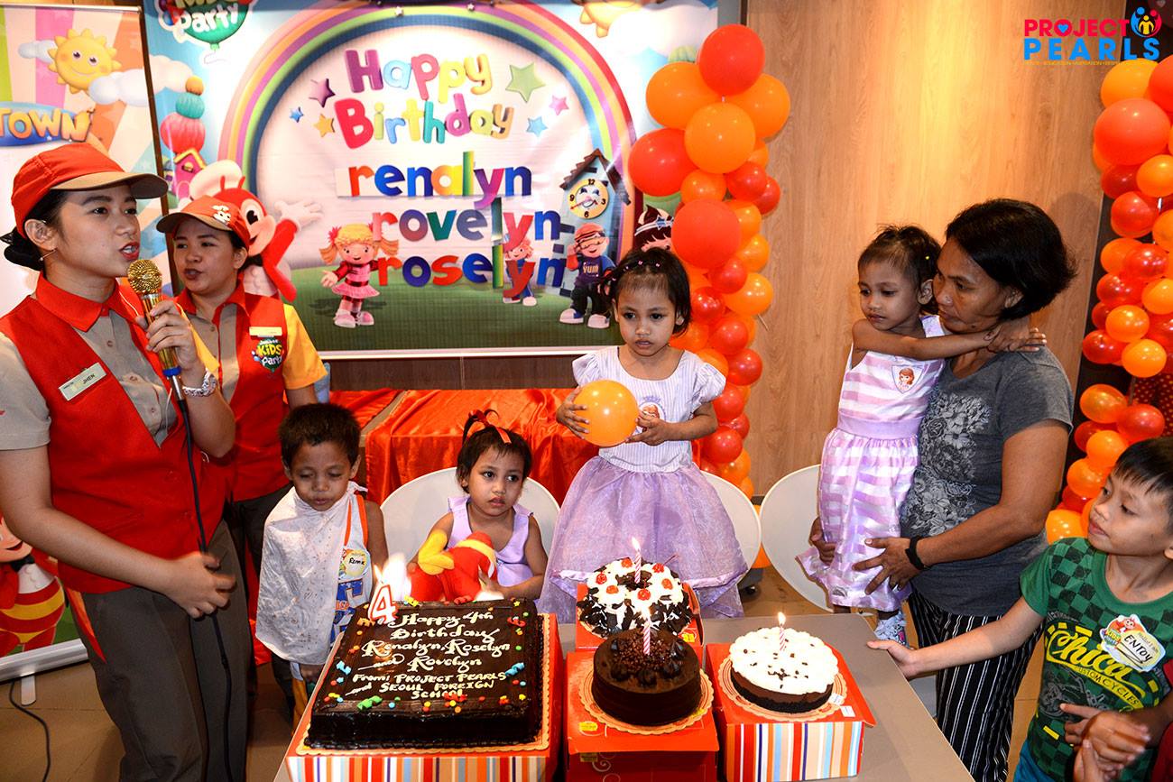 Triplets 4th birthday celebration at Jollibee.